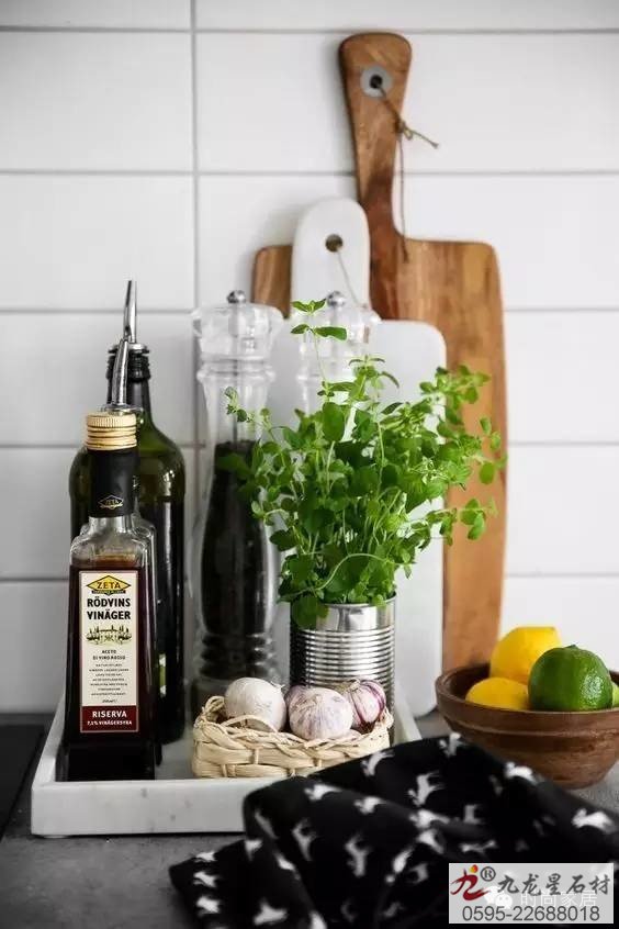 ↑大理石紋的托盤可以有一個。整齊的擺放上必備調(diào)料瓶,兼具收納功能哦。