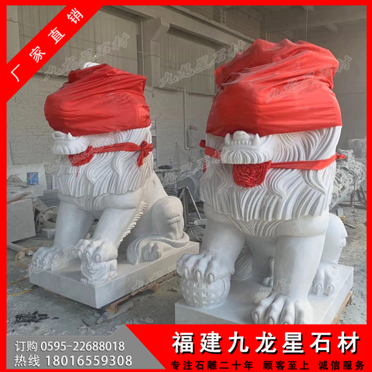 石雕港幣獅是舶來之物,隨著西方銀行的傳入,較早出現(xiàn)在香港銀行的門前,所以因此而得名。這類石獅比較寫實,造型和真實的獅子造型差不多。它們一般是雄雌一對,或站或立于銀行大門兩側,一般雄獅子嘴巴張開,寓意招財進寶。而雌獅子著閉著嘴巴,寓意守財之意。
