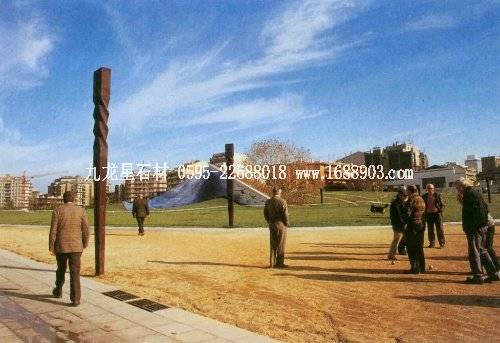 “造型景觀”是尺度相對(duì)較大的大地藝術(shù)綜合體。它與紀(jì)念功能、個(gè)人主題沒(méi)有直接關(guān)系,是一種在公共園區(qū)中極為貼切的將現(xiàn)代人的生活同自然、文化一體化的藝術(shù)。造型景觀是尺度相對(duì)較大的大地藝術(shù)綜合體;它與紀(jì)念功能、個(gè)人主題沒(méi)有直接關(guān)系,是一種在公共園區(qū)中極為貼切的將現(xiàn)代人的生活同自然、文化一體化的藝術(shù)。又是一種以造型、色彩和材料在環(huán)境中起主導(dǎo)作用、并能整合視野中各種造型要素的藝術(shù)。野口勇曾說(shuō):“我喜歡把園林當(dāng)作空間的雕塑……人們可以進(jìn)入這樣一個(gè)空間,它是他周?chē)鎸?shí)的領(lǐng)域,當(dāng)一些精心考慮的物體和線條褙引入的時(shí)候,就具有了尺度和意義。這是雕塑創(chuàng)造空間的原因”。(13)