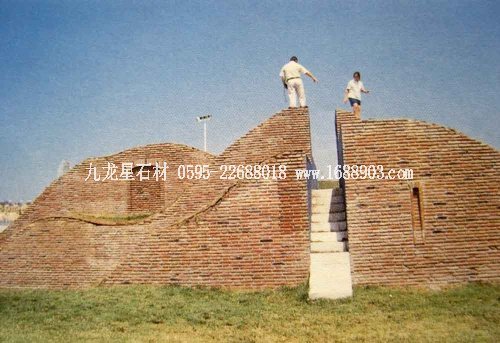 如果說(shuō)奧克.德弗里斯在鹿特丹的那件作品像一支漫不經(jīng)心的童謠,綿延幾百米,不斷地帶給路人驚喜的話,亞歷山大.阿爾吉拉在馬德里郊外的那件作品似乎更為離奇。第一次見(jiàn)到它的人無(wú)不以為是紅磚外墻的公廁,用臺(tái)階分成男左女右兩部分。走近才發(fā)現(xiàn)是一座與周?chē)莸剡B在一起的雕塑作品,當(dāng)?shù)氐哪嗤帘粔痉e起來(lái)夯實(shí)成鋪滿草皮的波狀斜坡。從另一個(gè)角度看,仿佛原來(lái)就生長(zhǎng)在那里奇妙的土堆。大人完全可以放任小孩子們?cè)谀抢矧T自行車(chē)沖“浪”,或玩其它游戲。