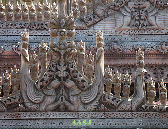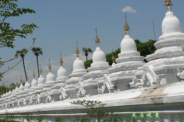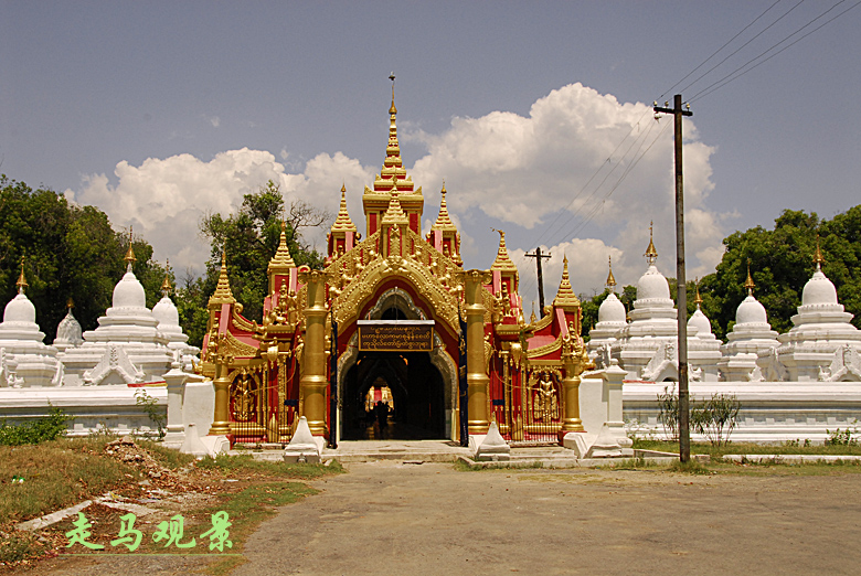 阿都瑪希寺的大門,由白色大理石經(jīng)書圍繞著金光四射的寺廟大門。在修建廟宇的問題上,緬甸人是毫不吝嗇的。為什么人們會說緬甸是富饒中的貧困,原因也許就在此。緬甸人將一生的很多時(shí)光和財(cái)富都貢獻(xiàn)給了佛。