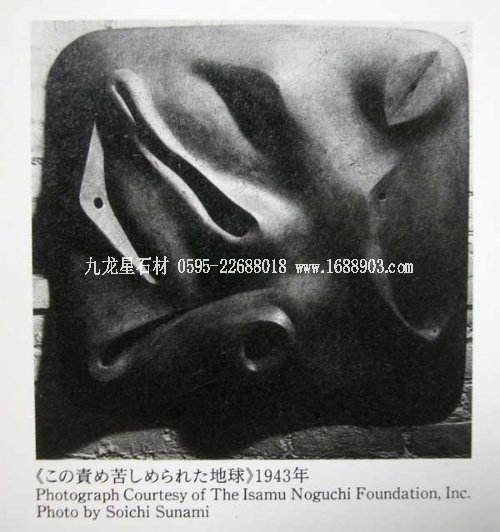 1996年3月我在東京第二次看野口勇雕刻展覽,盡管那時我已經(jīng)認(rèn)識到他是一位重要的雕刻家,但是對野口勇的認(rèn)識還是相當(dāng)模糊,然而兩個月之后,在看"野口勇和路易·康(Louis Kahn)"展覽時,一件1943年創(chuàng)作的黑色銅雕"被蹂躪的地球"讓我覺醒,這件作品讓我生出想去撫摸的感覺,(在這里說可能不太文雅,但是我必須誠實地講出來才有說服力,那就是我看美術(shù)館中無人,就閉著眼睛去“撫摸”這件雕刻,那時通過手傳達(dá)給我就象在撫摸戀人身體的感覺)這是野口勇雕刻的官能性對我的誘惑。野口勇的雕刻從日本和中國的傳統(tǒng)文化的空間美學(xué)中獲得啟示,同時還通過東方書法和日本陶藝讓我們獲得對身體的感受。