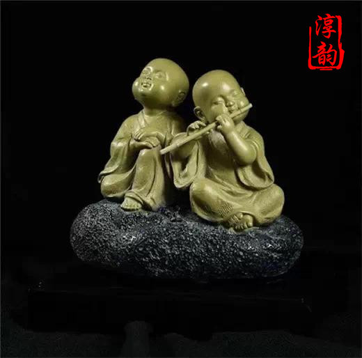 這組表情豐富、形態(tài)各異又頗有些禪意的小沙彌由鐵丸石精心雕琢而成。