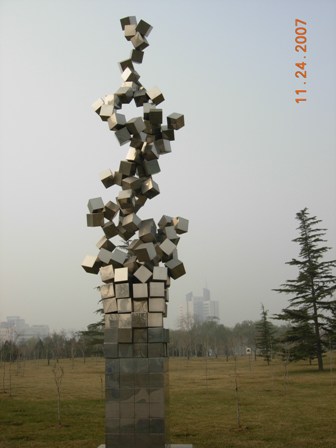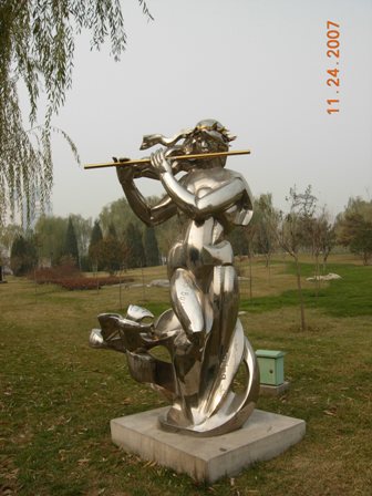 今天一早去了北京國際雕塑公園,公園占地面積20多公頃,國際化雕塑作品有200多件,還是非常值得一看的,當然有一些作品和我在法國巴黎的蓬皮杜中心看到的抽象派作品一樣,還是看不懂,但是絕大部分我還是非常喜歡的。有石雕、鑄銅、金屬等。
