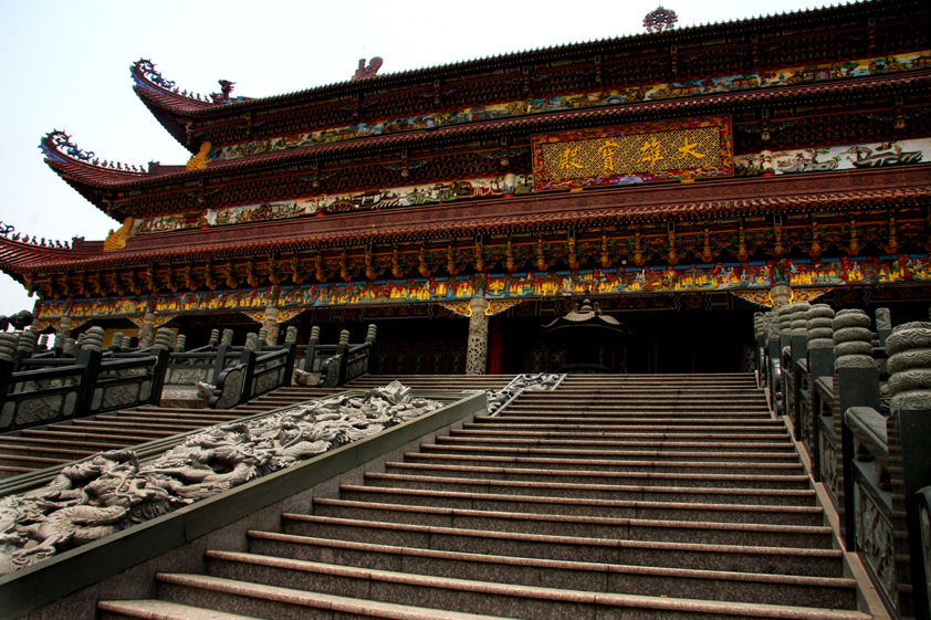 主體建筑大雄寶殿平面呈邊長80米的正方形,超過故宮太和殿與山東曲阜孔府大成殿的規(guī)模,號稱“亞洲第一殿”。