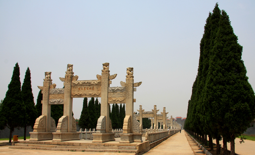 南海禪寺山門牌子樓長50米,高31米。山門內(nèi)長500米,寬20米的甬道上,自北向南依次按12姻緣、12生肖、12菩薩建筑的 12座花崗巖牌坊,風(fēng)格獨特,巍巍壯觀。