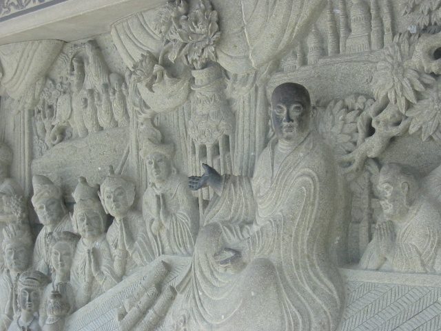 這一組禮佛廣場上閃長花崗巖雕刻,手法細膩表現(xiàn)宗教作品栩栩如生,雖然為現(xiàn)代藝術,但無論從設計到工藝均展現(xiàn)了很高的水準。