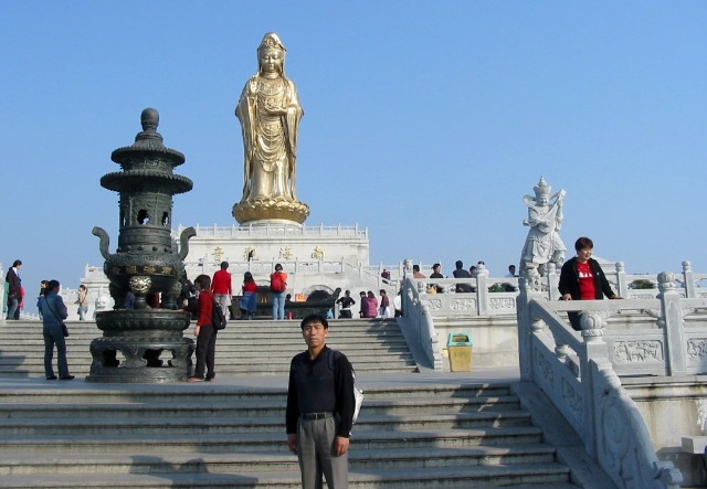 來禮佛廣場的路上我也買了幾柱高香,在上面的臺階左側為觀音菩薩奉上,凡是來普陀山的香客、游人無不對觀音菩薩畢恭畢敬。