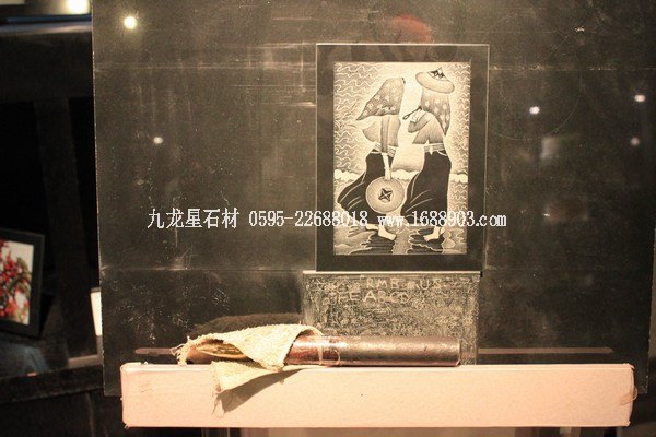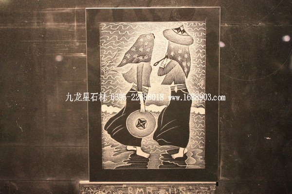 最后重點(diǎn)介紹的是手雕的石板像,石板面的顏色是黑色的,上面的圖案全由雕刻的深淺不同表現(xiàn)出來(lái):