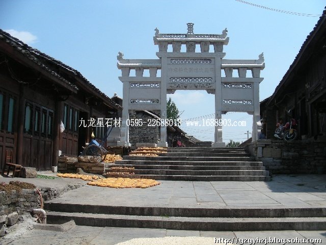 上網(wǎng)查閱了一下關(guān)于牌坊的資料:牌坊,是封建社會為表彰功勛、科第、德政以及忠孝節(jié)義所立的建筑物。牌坊就其建造意圖來說,可分為四類:一是功德牌坊,為某人記功記德。 二是貞潔道德牌坊,多表彰節(jié)婦烈女,三類是標(biāo)志科舉成就的,多為家族牌坊,為光宗耀祖之用。四類為標(biāo)志坊,多立于村鎮(zhèn)入口與街上,作為空間段落的分隔之用。