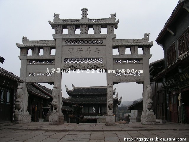 其實(shí),在我看來,而現(xiàn)在新建的牌坊,構(gòu)建意圖已經(jīng)遠(yuǎn)遠(yuǎn)離開了被打上封建主義的那些色彩烙印。在用意上已經(jīng)擴(kuò)展了它的內(nèi)涵,使其外延更為豐富和更具觀賞性。如地名、旅游點(diǎn)、廟宇、山門等以牌坊作為門頭等標(biāo)志性建筑物,用來標(biāo)明地名,宣傳文化的建筑物。那些刻寫在牌坊上面的楹聯(lián)文字,雖片言只語,卻道出了一些人生哲理與敘事抒情趣事趣聞,可謂深淺皆成趣,雅俗均共賞。