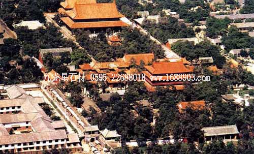 孔廟位于山東省曲阜市南門內(nèi),是歷代祭祀孔子的廟宇,建筑規(guī)模宏大,雄偉壯麗。其平面呈長(zhǎng)方形,總面積327.5畝,南北長(zhǎng)1120米。整個(gè)孔廟的建筑群以中軸線貫穿,左右對(duì)稱,布局嚴(yán)謹(jǐn),共有九進(jìn)院落。全廟共有五殿、一祠、一閣、一壇、兩堂、十七碑亭、五十三門坊,共計(jì)有殿廡四百六十六間??讖R內(nèi)最為著名的建筑有:欞星門、二門、奎文閣、杏壇、大成殿、寢殿、圣跡堂、詩(shī)禮堂等。杏壇,傳為孔子講學(xué)處,壇旁一株古檜,稱“先師手植檜”;大成殿為孔廟的主殿,殿內(nèi)正中奉祀孔子塑像,兩旁為4配和12哲的塑像;東西廡殿原供孔子弟子及儒家歷代先賢;故宅井后的“魯壁”為秦始皇焚書坑儒時(shí),孔子第九代孫孔鮒收藏《尚書》、《禮記》、《論語(yǔ)》、《孝經(jīng)》等書的夾墻。孔廟與孔府、孔林并稱“三孔”,是中國(guó)現(xiàn)存最大的四大古建筑群之一。