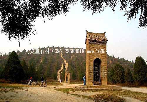 乾陵是唐朝第三代皇帝李治和女皇武則天的合葬陵,位于陜西省乾縣城北6公里的梁山上,距西安80公里。東有豹谷,西有漢谷,依山為闕,氣勢(shì)雄偉。這是唐十八陵中最有代表性和迄今保存最好的一座陵墓。陵園內(nèi)城的南北城墻各長(zhǎng)1450米,東墻長(zhǎng)1582米,西墻長(zhǎng)1438米,墻體厚2.4米。乾陵的地面設(shè)置,遺留到現(xiàn)在的主要是陵墓石刻。這些石刻十分精美,屹立在梁山之巔,至今已有1200多年的歷史。另還有朱雀門外兩座大碑,即“七節(jié)碑”和著名的“無(wú)字碑”,以及石像61尊。圖片:
