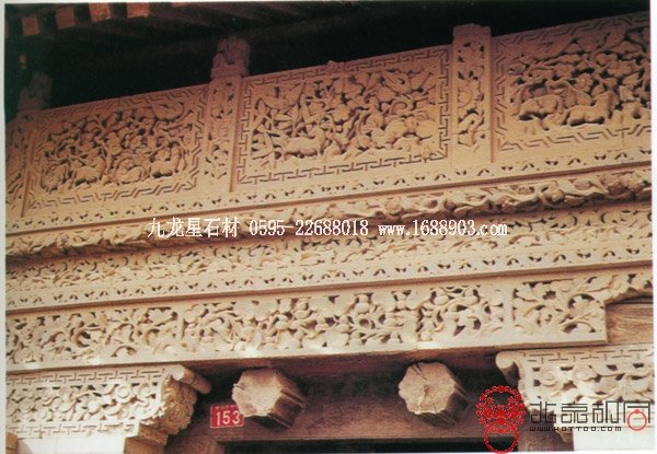 這是石牌坊中坊上沿的雙面透雕“福、祿、壽三星”。