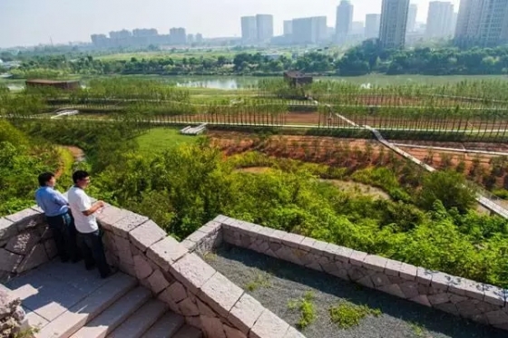 土人設(shè)計(jì)(Turenscape)在衢州鹿鳴公園項(xiàng)目中運(yùn)用了三大理念:最少干預(yù)、都市農(nóng)業(yè)的豐產(chǎn)景觀及水適應(yīng)性。不同的季節(jié),公園都是一片花的海洋,有向日葵、油菜花等等,形成既豐產(chǎn)而又美麗的植被基底。此外,設(shè)計(jì)中也充分尊重原有的鄉(xiāng)土文化遺產(chǎn),還有一套完整的環(huán)境解說(shuō)系統(tǒng)講述場(chǎng)地的自然與人文的歷史故事。公園建成開放后,受到市民廣泛喜愛,成為衢州的新名片。