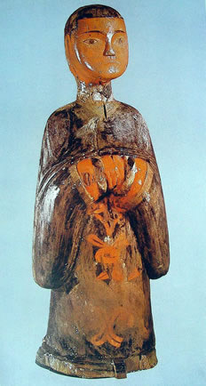 戰(zhàn)國木俑 高64厘米 河南信陽出土