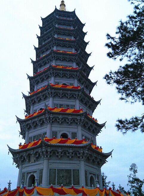 福建省沙縣淘金山景區(qū)舍利寶塔,塔身通高為71.8米,寶塔共分九層(不含地宮),外表采用雕刻花崗巖建造,突出仿宋代木結構風格,外墻設有大小石雕圣像108尊,塔內設有千尊銅佛,是目前國內最高的石雕寶塔。
