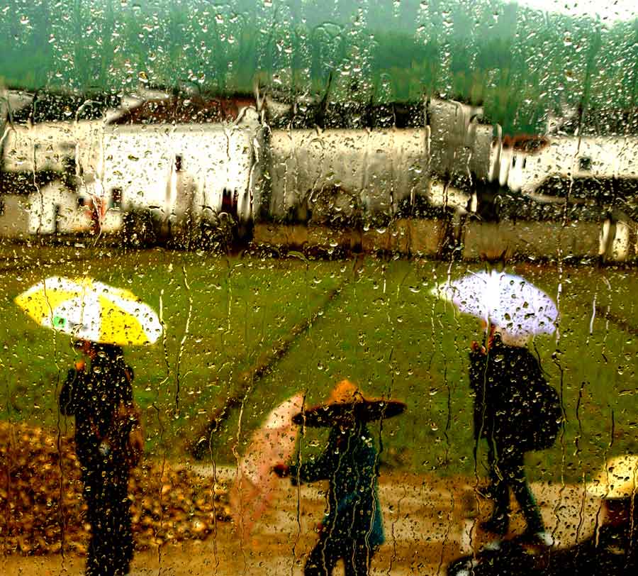 創(chuàng)意二等獎:謝偉洪---煙雨江南。早春二月的雨水打在車窗的玻璃上,給人一種蒙朧的感覺,作者將古建筑與游客構(gòu)成一幅煙雨江南的韻味。