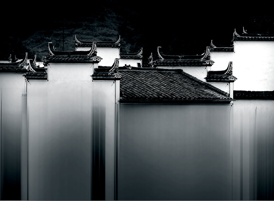 林學(xué)軍---徽韻。作品拍攝于2009年8月,拍攝于婺源縣古坦鄉(xiāng)的菊徑村,黛瓦、粉壁、馬頭墻的房屋,在側(cè)逆光的照射下非常有婺源徽派建筑特色,強化古建筑的韻味。