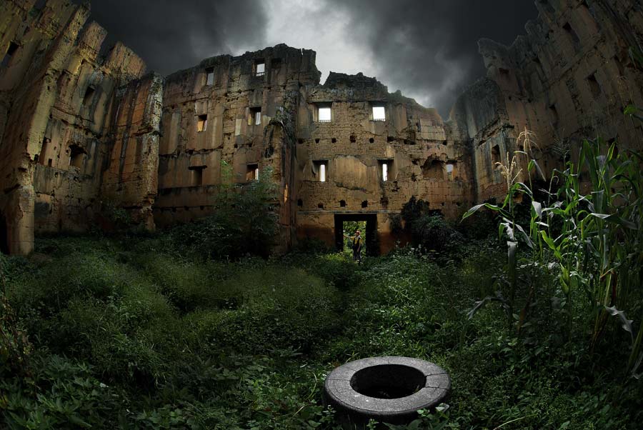陳道慶---滄桑。作品拍攝于福建省永定縣撫市鄉(xiāng),撫市鄉(xiāng)方型土樓歷史悠久,規(guī)模宏大,蔚為壯觀,本圖土樓因火災(zāi)殘破數(shù)十年,遺韻滄桑,似乎在向人們講述古井的傳說。