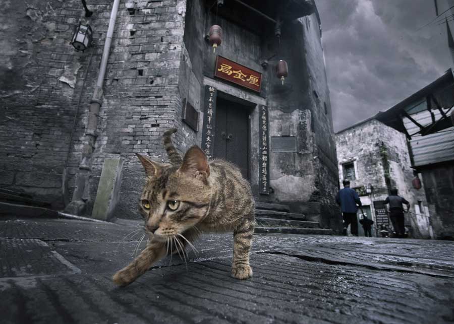 陳敏捷---古街精靈。古街上這只突如其來的家貓,帶著幾許神秘,帶著幾許詭異,有如精靈般地以恰當(dāng)方式出現(xiàn)在畫面恰當(dāng)?shù)奈恢蒙?仿佛能幫我們在這古街上完成一次時間的穿越。