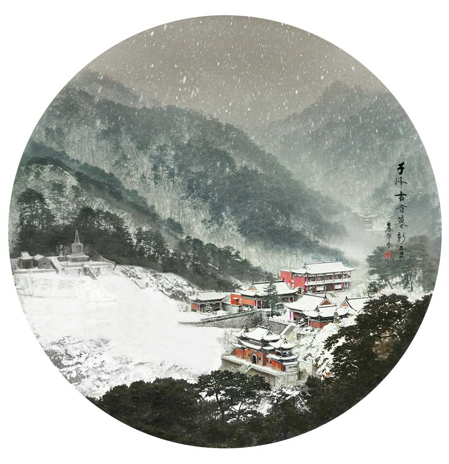 宋暉---千峰古寺暮飛雪。作品拍攝于遼寧省千山,作者透過鏡頭看到雪后的千山,畫面簡潔、線條清晰,猶如一幅天然的山水畫。