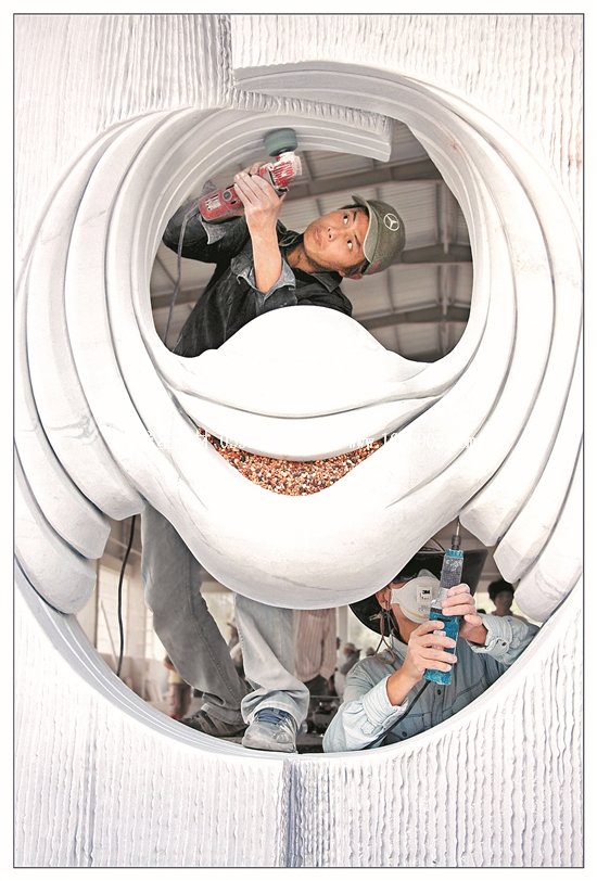 ——精湛技藝踏遍山河。在對惠安“世界石雕之都”的命名函中,世界手工藝理事會如是寫道:“惠安已成為國內外產業(yè)規(guī)模最大、工藝水平最高、產品種類最齊全、加工能力最強的石雕石材工藝品生產加工與出口基地。”與之相映生輝的,是惠安雕藝工匠們踏遍祖國山河,將作品和技術傳揚至海內外。此次攝影展中,就有不少攝影家們赴外地采風,用鏡頭將大江南北的惠安雕藝精品力作,仔細珍藏,拍下了《長沙青年毛澤東雕像》、《中央革命根據(jù)地歷史博物館大型浮雕(江西省瑞金市)》、《沙縣淘金山舍利塔》等佳作。而《傳統(tǒng)石雕龍柱》更攝下臺北龍山寺、福州定光寺、安溪文廟、晉江安海龍山寺、泉港峰尾東岳廟、泉港沙格靈慈宮等多個寺廟的龍柱,拼為組圖,集中展現(xiàn)惠安石匠們的精湛技藝。