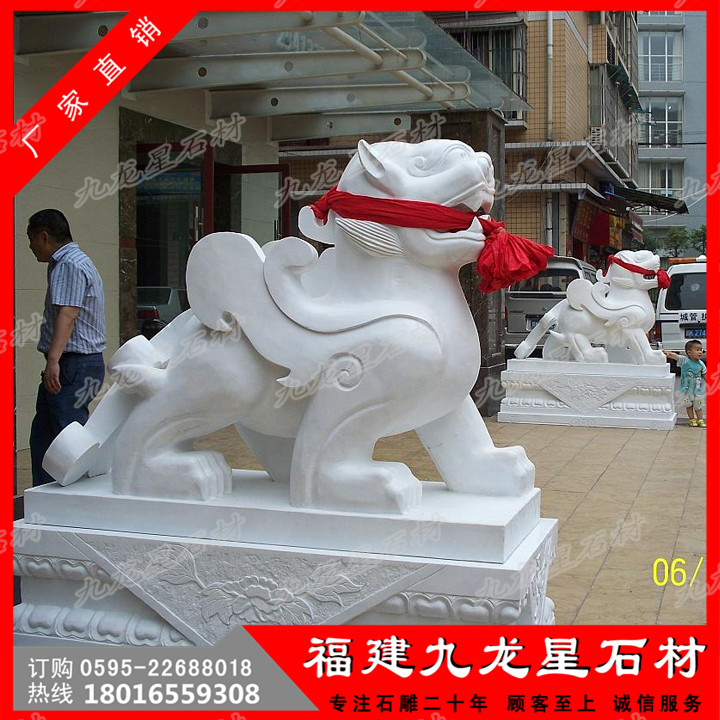 銀行門口石貔貅是指用優(yōu)質(zhì)天青墨玉、霞玉、緬甸玉、漢白玉、墨玉、佘太玉、砂巖、大理石、花崗石、銀灰白石、雪花白等石材玉料,雕刻成各類藝術用品和擺件的貔貅。一般采用圓雕,透雕,線雕,平雕,浮雕,畫雕,影雕等多種工藝雕刻。